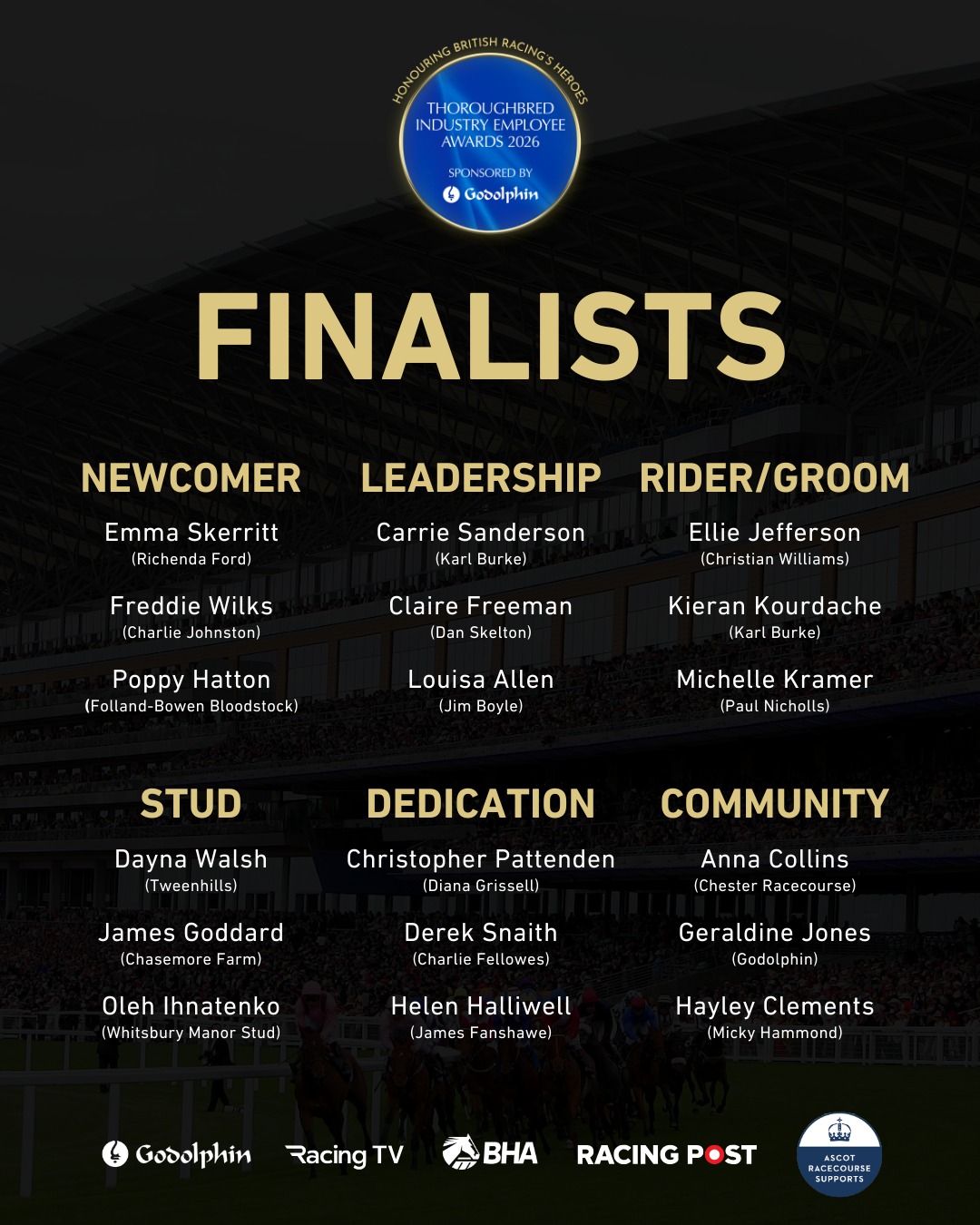 We’re delighted to see two National Horseracing College graduates announced as finalists in the highly competitive 2026 Thoroughbred Industry Employee Awards, sponsored by Godolphin.